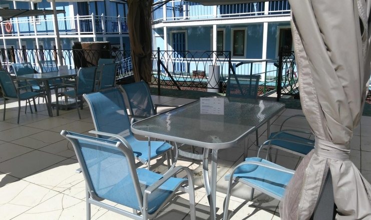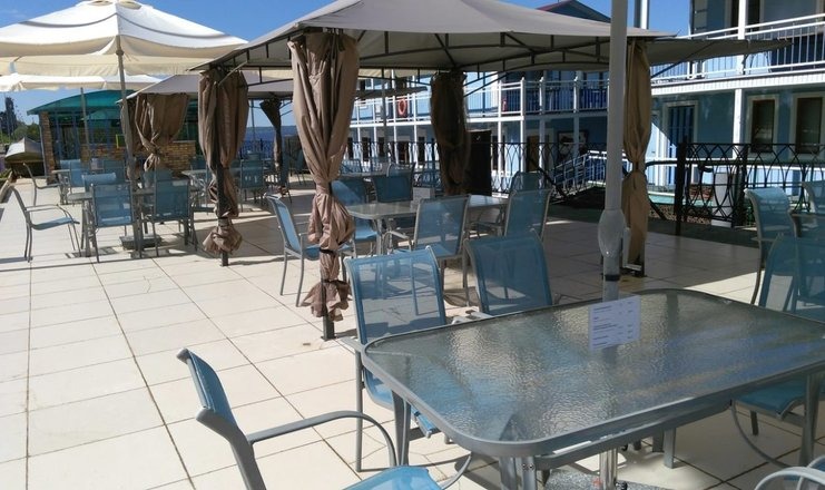 Комплекс занимает территорию площадью 1 гектар и состоит из основного двухэтажного здания дебаркадера, двух флигелей и трехэтажного особняка. Жилой фонд рассчитан на единовременное размещение 88 человек. Гостям предлагаются номера категории Стандарт, Полулюкс и апартаменты в дебаркадере, номера Люкс, Делюкс и Комфорт в особняке и Стандарт во флигелях. Все номера, выполненные в светлых оттенках, оснащены кондиционером, телевизор, санузлом с душем.