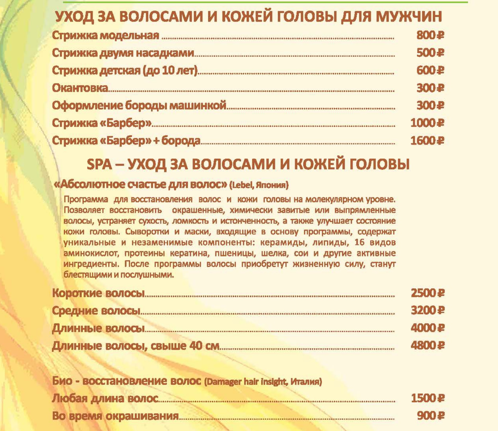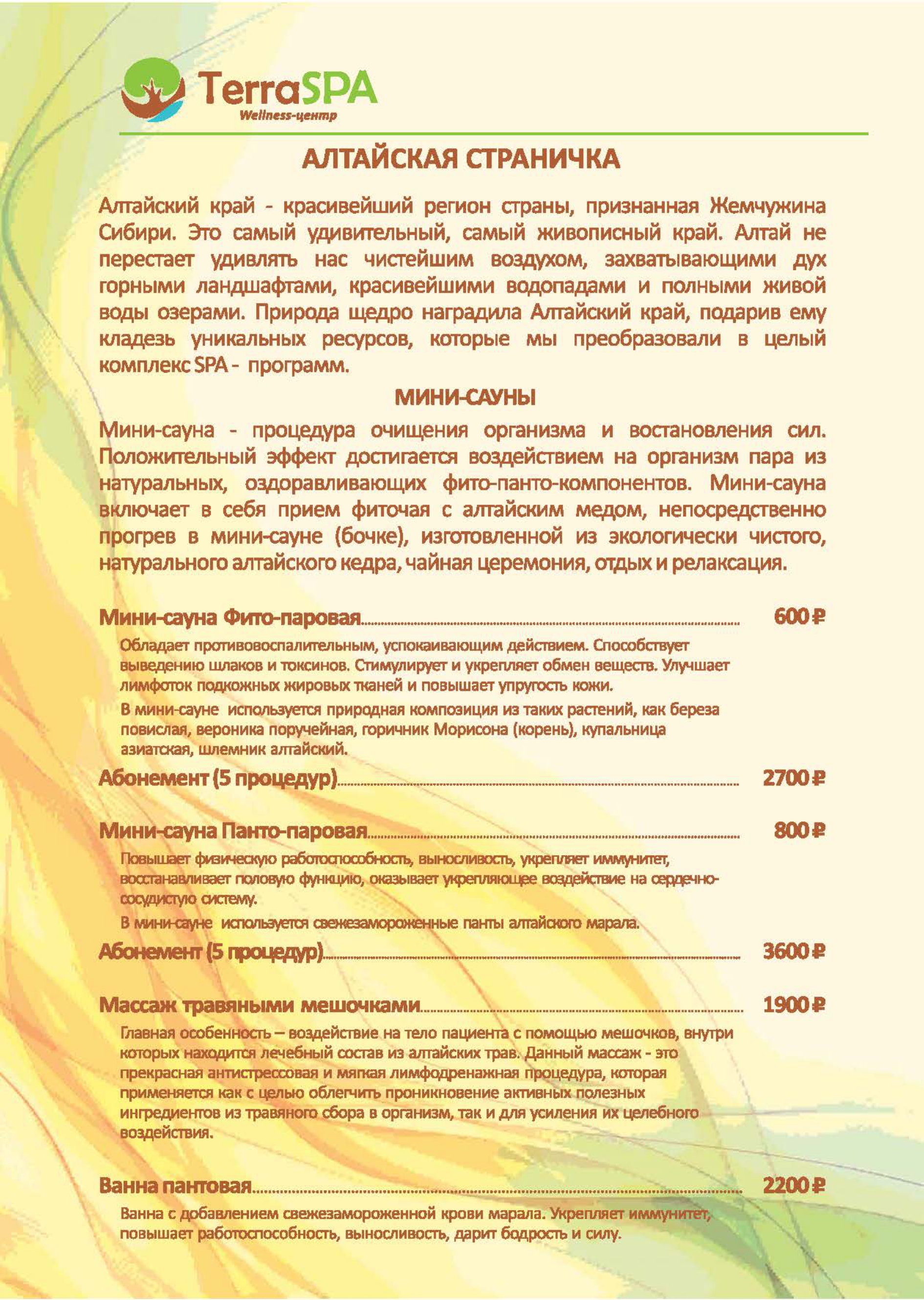 Цены на СПА услуги